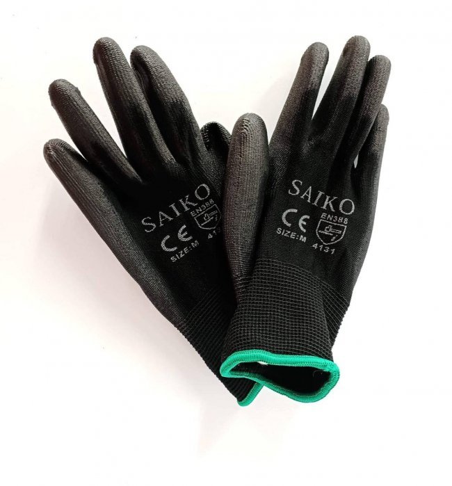 ถุงมือPUเต็มฝ่ามือสีดำ SAIKO