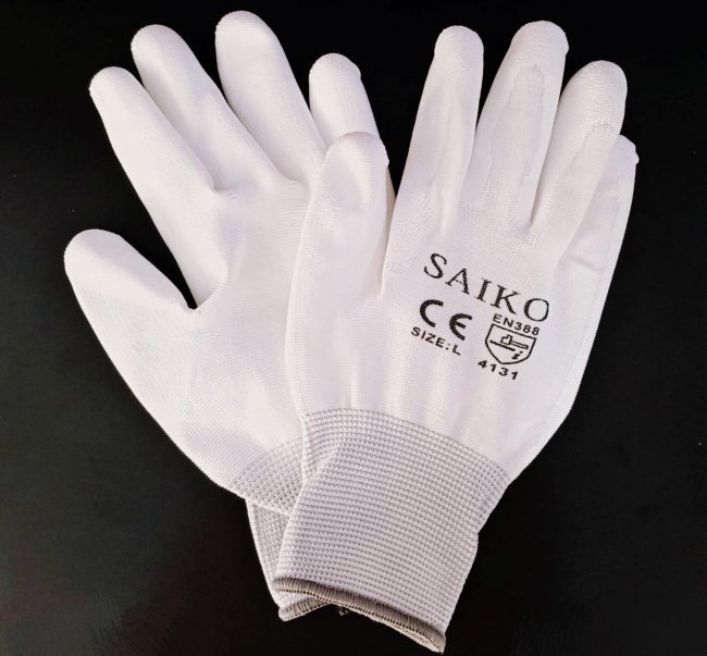 ถุงมือPUเต็มฝ่ามือสีขาว SAIKO