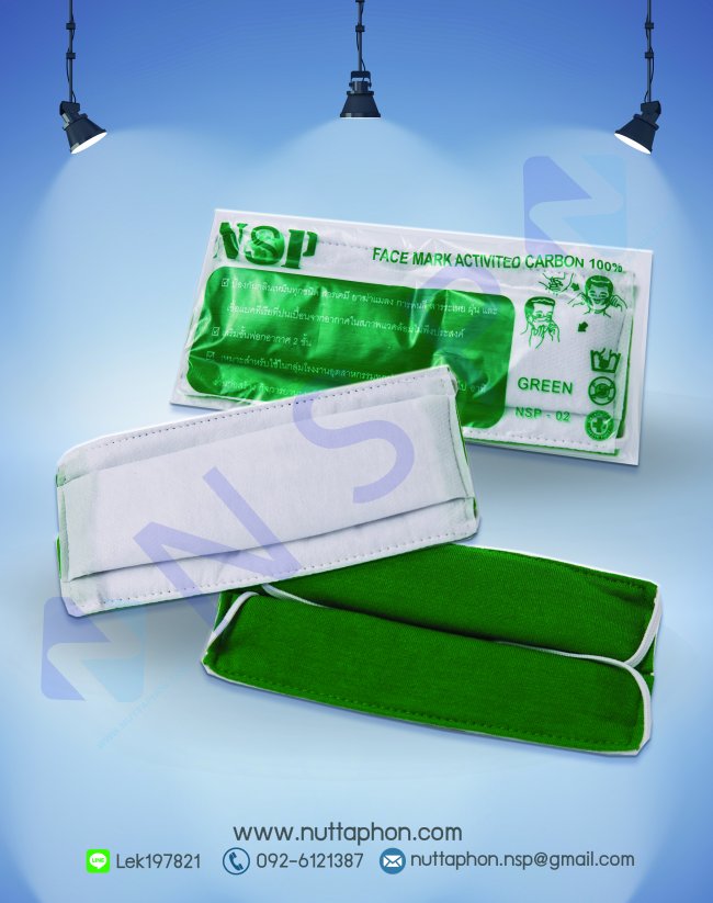 ผ้าปิดจมูกคาร์บอนเขียว 5 ชั้น รหัส : 291 ราคา : 7 บาท/ชิ้น .- ประเภท : ผ้าปิดจมูกคาร์บอนสีเขียว 5 ชั้น (ลวดใน)