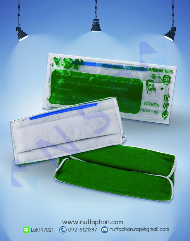 ผ้าปิดจมูกคาร์บอนเขียว 6 ชั้น รหัส : 292 ราคา : 12 บาท/ชิ้น .- ประเภท : ผ้าปิดจมูกคาร์บอนสีเขียว 6 ชั้น (ลวดนอก)