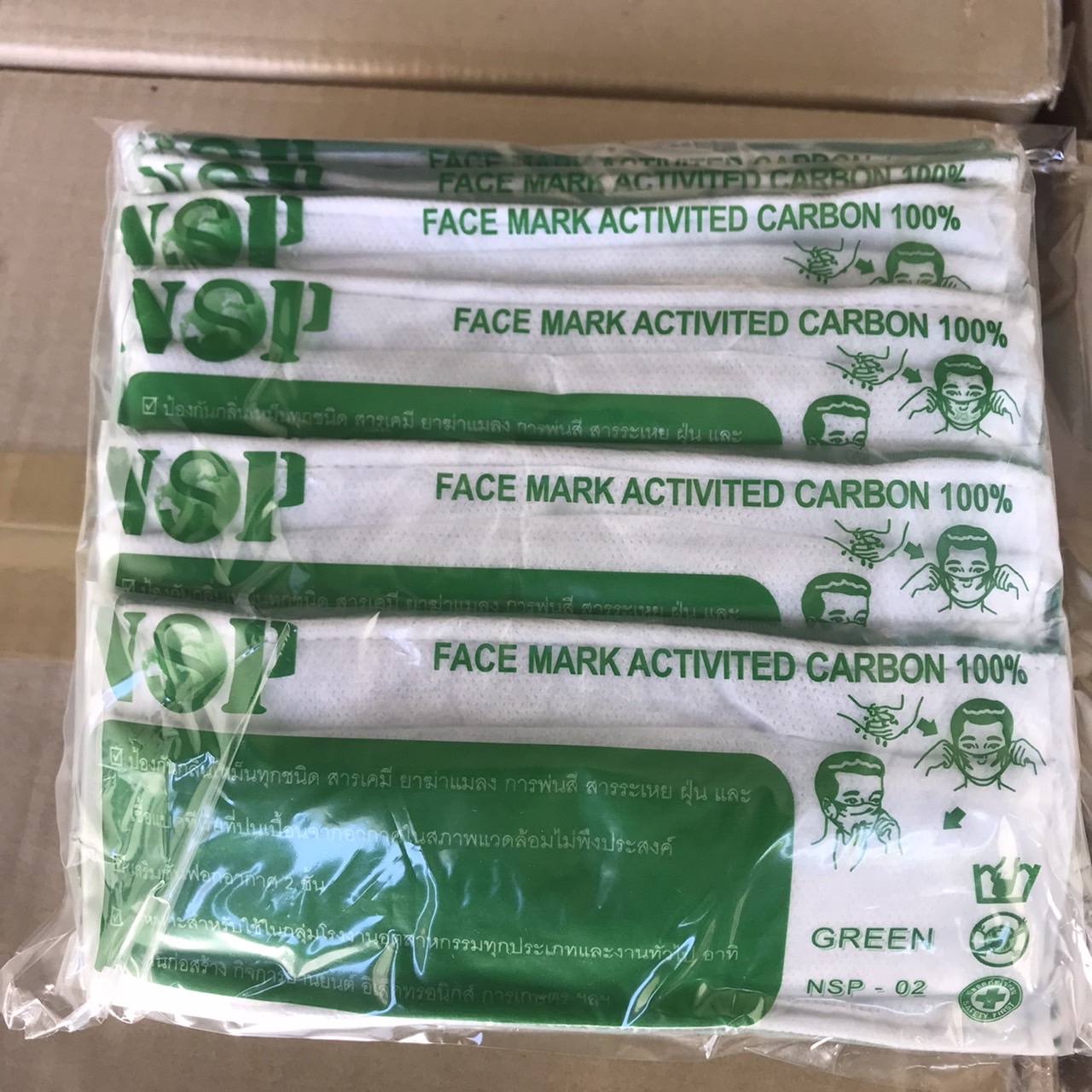 ผ้าปิดจมูกคาร์บอนเขียว 7 ชั้น รหัส : 311 ราคา : 13 บาท/ชิ้น .- ประเภท : ผ้าปิดจมูกคาร์บอนสีเขียว 7 ชั้น NSP